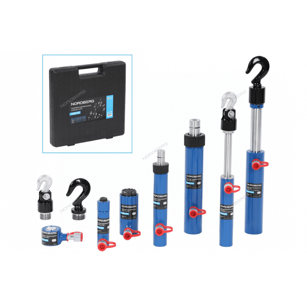 - Широкий набор цилиндров — в комплекте 7 цилиндров различного назначения (толкающие и тянущие), включая мини-цилиндры для ограниченного пространства и мощные стяжные модели;