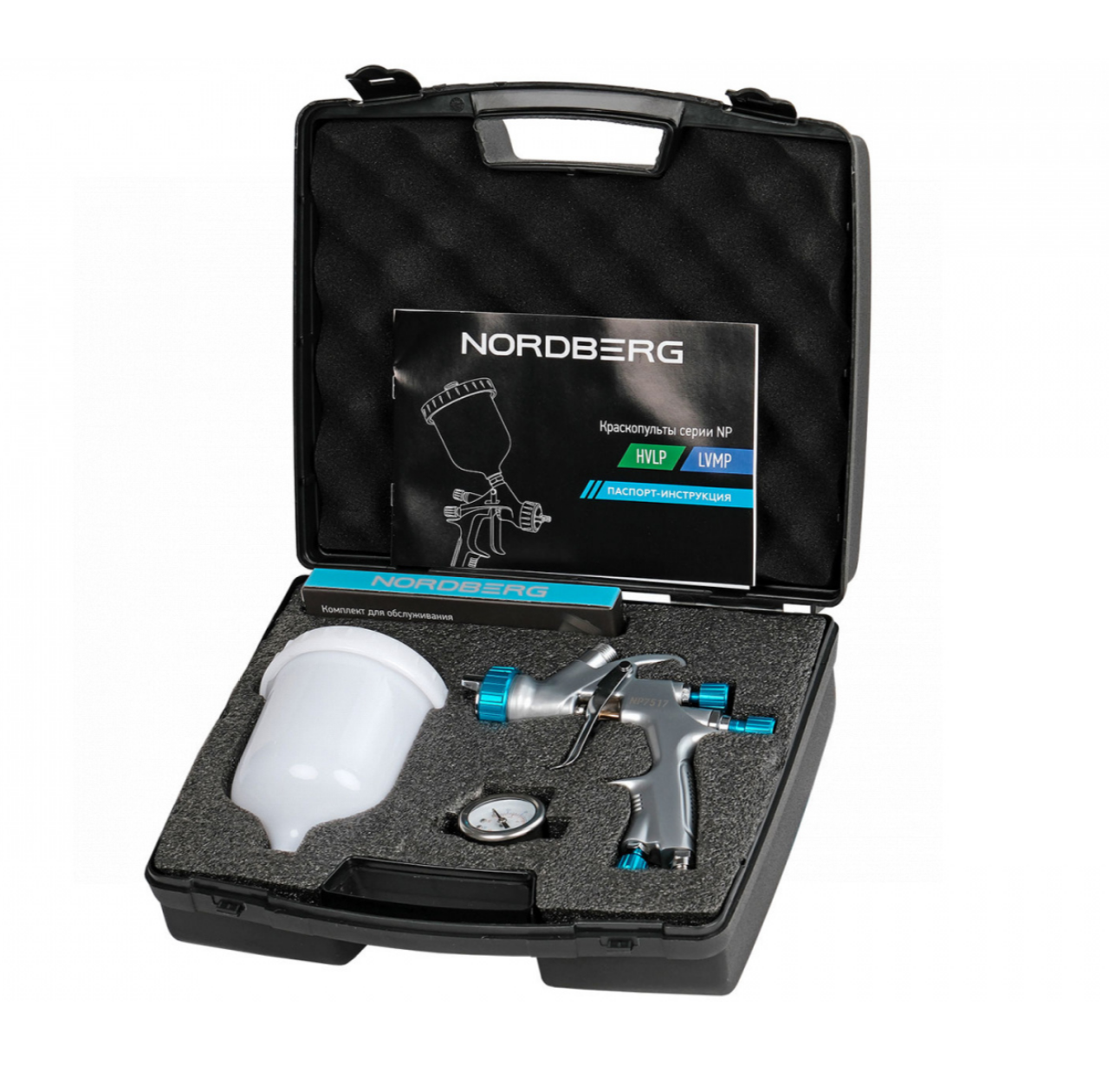 - В комплекте с краскопультом – регулятор давления с манометром, ключ, щетка, фильтры, ремкомплект, БРС, кейс.