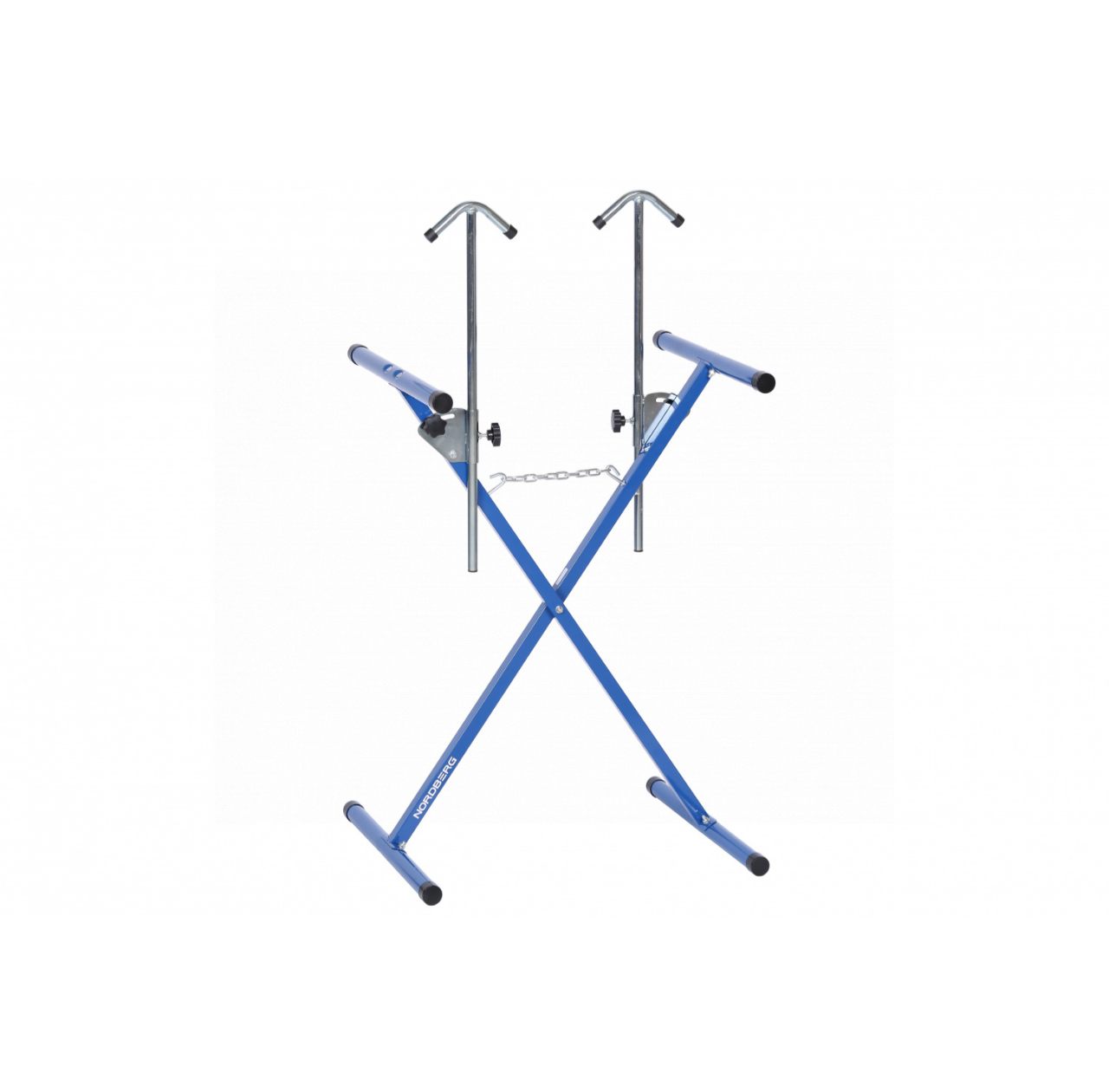 Х-образный регулируемый по высоте и ширине стенд с дополнительными регулируемыми держателями, обеспечивает более устойчивое положение и удобство обработки кузовной детали при проведении арматурных и малярно-кузовных работ с кузовными деталями автомобиля.