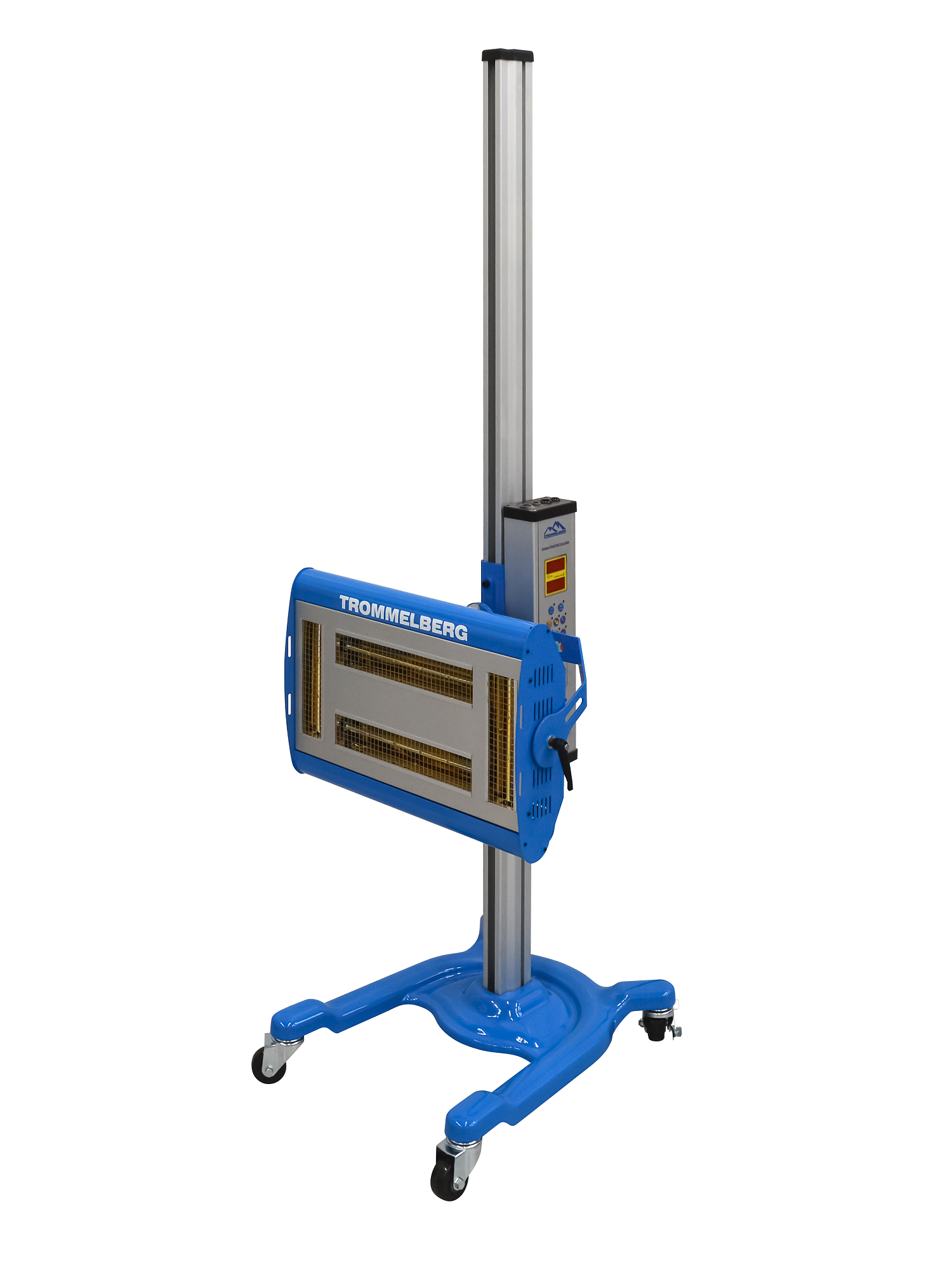Мобильная установка оснащена кассетной сборкой с 4 инфракрасными излучателями для высушивания двухкомпонентных лакокрасочных и подготовительных материалов в процессе ремонта автомобильных покрытий. Благодаря использованию коротковолнового ИК-диапазона достигается полное высыхание материалов за более короткое время. Использование ИК-высушивания материалов, особенно в процессе точечного ремонта, обеспечивает существенную экономию ресурсов и значительно ускоряет процедуру ремонта как на этапе подготовки, так и на этапе сушки финишного покрытия.