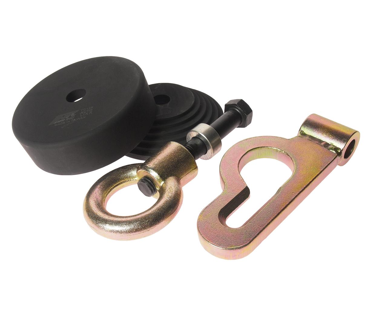 - Предназначен для вытягивания передних стоек без болтов, а также для выравнивания шасси до заводских параметров. При необходимости чашка передней стойки снимается.